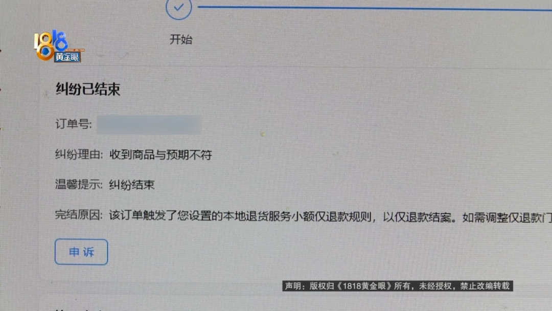 朱先生:我联系平台了,但是平台回复,小额订单不支持申诉。